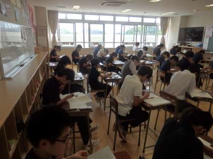 6月22日(金)より、1学期の期末考査が始まりました。授業での積み重ね、家庭学習の成果が発揮できるように生徒のみなさんは精一杯頑張りましょう。(田村真)