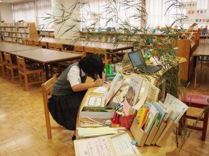 見ると「ライブラリーニュース」という委員会発行の新聞の原稿を丁寧に書いていました。誰もが図書室の入り口から一歩入ってみたい、という気持ちになる図書室をめざしてください。