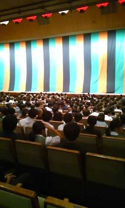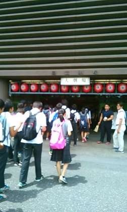 歌舞伎座で、日本振袖始を観賞しました。ここでも集合整列そして観賞態度の素晴らしさが光るフナキボの生徒たちです。「振袖」という名称がここからつけられたのか、と納得の演目でした。