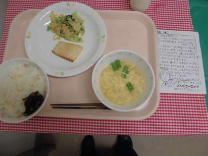 今日の給食では、形が崩れないよう注意し、丸めてゆでてみそ汁にいれました。