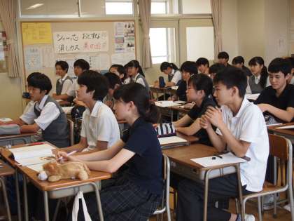 3年生の道徳は「よりよい校風の樹立」がテーマです。授業中の私語を注意する役割を持たせられた学級委員の心の変化を記した教材を扱い、自分がクラスのために何ができるのかを考えることの大切さを考える授業です。ワークシートの「よりよい学校にするために後輩に伝えたいことは」の問いには「そこでよい、と思わずさらに上をめざす」「リーダーに任せるのではなく、自ら行動するよう心がける」といった意見が書かれていました。