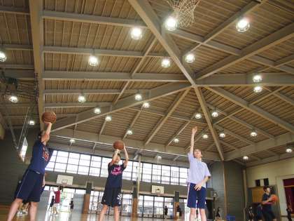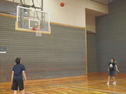 バスケットボールが床に当たる独特の音が響く体育館に顔を出すと、女子バスケットボール部がシュート練習の真っ最中です。ゴールをめがけて集中力を高めると、今日の授業にもよい影響がでる可能性が高いかなあ、と思うほどみんな真剣で素敵な表情をしていました。