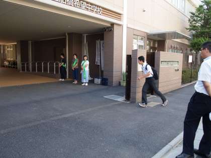 3年6組の保護者の方が朝のあいさつキャンペーンに参加してくださいました。朝から気温が30度に迫る中、さわやかに生徒に声をかけつづけてくださいました。ありがとうございます。