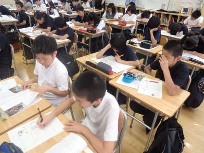 先日行われました、道徳授業地区公開講座の1学年の授業の様子です。サッカー日本代表キャプテン長谷部誠選手の「遅刻が努力を無駄にする。」という資料から学年目標でもある「信頼」について考えました。生徒どうしで「信頼される人とはどんな人か」について意見を交換し、一人ひとりが深く考えることができました。1学期も残り1週間、そして2学期には河口湖移動教室や学芸発表会など大きな行事もあります。信頼される学年成長できるようにこれからもいっしょに頑張りましょう。(田村真)
