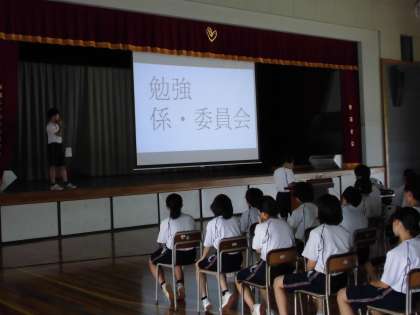 3年生の学年集会があり、学級委員の話から始まりました。まず3年生全体の1学期の反省で「テスト期間中に勉強ができなかった人が多かった」などが挙げられました。次に、短い動画を見ました。動画は、サッカー観戦中のクロアチアの消防士が約15秒で出動する内容でした。学級委員からは、このクロアチアの消防士にあって3年生にないものとして、「切り替えの早さ」と「仕事に責任をもつ」と分析していました。夏休みはこれらの反省を活かして計画的に過ごせるようにしましょう。(伊井)