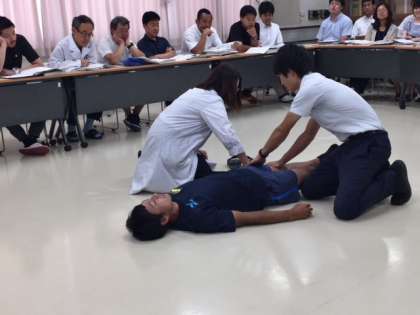 熱中症、アレルギー対応に関する研修を実施し、夏季休業中も不測の事態に備えます。