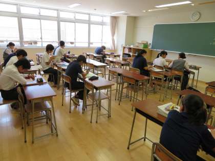 3年生の自習教室の様子です。どの生徒も各自勉強に集中して取り組んでいます。さすが3年生です。(田村真)