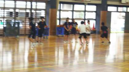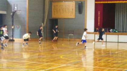 体育館のバスケットボール部の活動の様子です。ステップワークの練習を頑張って取り組んでいます。(田村真)
