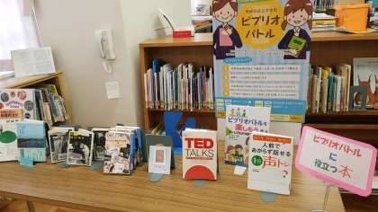 船橋希望中の図書室は夏休みも開室しています。涼しく静かな図書室は自習や読者にもってこいの空間です。さらに、ビブリオバトルコーナーもできていました。これは先日行われたビブリオバトル講演会で紹介された本ですね。チャンプ本の『穴』はすでに貸し出されていました。夏休み、充実した読者にも励んでもらいたいものです。