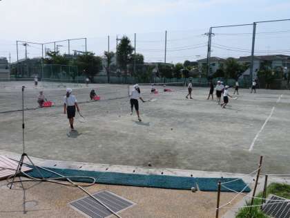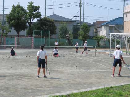 本日、校庭ではソフトテニス部が活動をしています。こまめな水分補給などをして熱中症対策をしっかりとりましょう。(田村真)