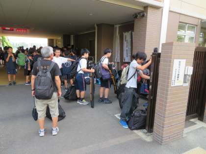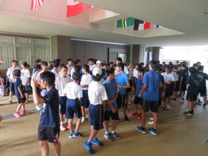 今日から、3泊4日の部活動合宿が始まります。バスケットボール部、剣道部、女子バレーボール部に加え、今年度は硬式テニス部も合宿に参加します。生徒たちも続々とピロティに集合しています。(田村真)
