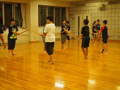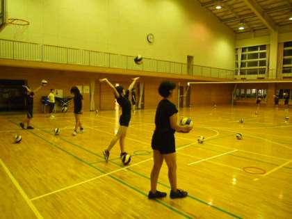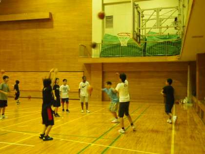 夕食後9時までは各部で夜の練習に入ります。バレーボールとバスケットボール、剣道は早速練習に取り組んでいます。