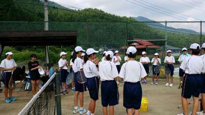 本日から河口湖合宿に参加しています。コートは自然に囲まれた緑豊かな立地で、子供たちもいつもと違う環境にわくわくしている様子でした。練習前にテニス部全体で決めた目標も伝え、さらに個人のプレーと技術目標も数名から聞きました。顧問としては全体目標の中の「今までの自分を超えよう」という項目が一番ぐっときました。