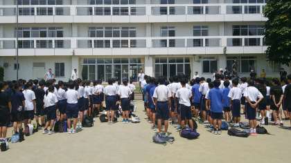 夜のミーティングで部長から伝えられた「もっとあいさつをしよう」「感謝の気持ちを言葉にしよう」。さて、明日からパワーアップとなるのでしょうか。顧問としても一教員としても期待しています。
