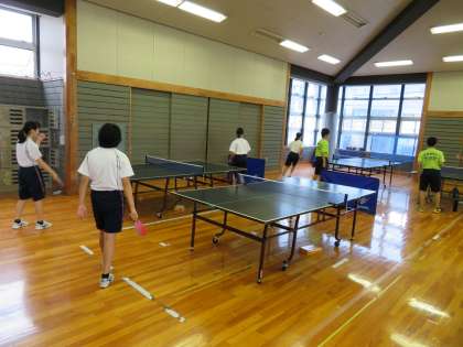 卓球部の活動の様子です。今日は雨が降り、気温もぐっと下がりました。生徒たちも先日に比べ、集中して練習に取り組めています。(田村真)