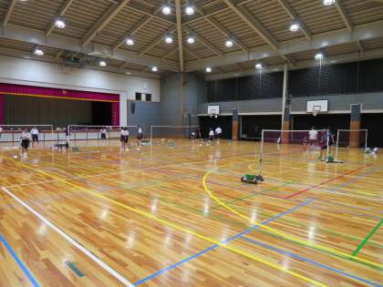 体育館では、バドミントン部が練習に取り組んでいます。昨日の練習試合で出た課題を振り返り、この夏で大きく成長できることに期待しています。(田村真)