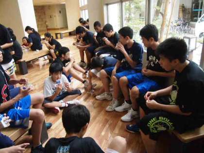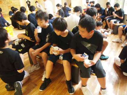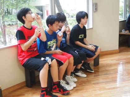 エネルギー補給のため3時には牛乳とヨーグルトが出ました。一時のホッとする場面で、生徒の表情も緩みます。
