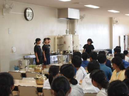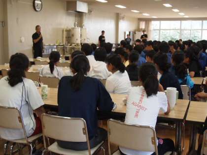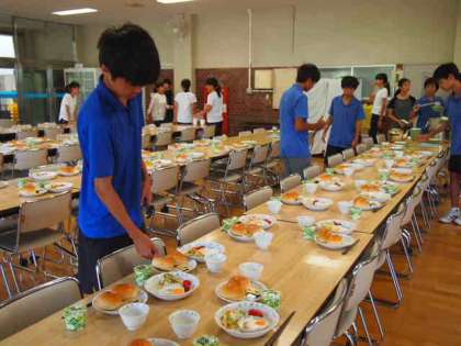 朝食の準備もテキパキさが確実に増しています。今日の「いただきます」は、バレーボール部が担当。校歌を歌い盛り上げました!