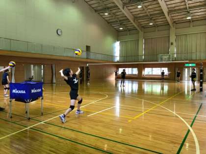 午後の練習が始まっています。バレー部はサービス練習です。サーブを一本一本打つ時に「8本目」などと声をあげ、集中して気持ちを込めて打ち込んでいます。