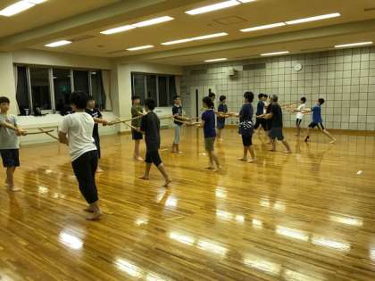 剣道部は、木刀を使用しての練習です。これは昇段審査を受ける際に必要な練習だそうです。注意点を丁寧に確認しながら稽古しています。 副校長