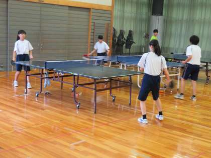 卓球部の活動の様子です。昨日の千歳中との練習試合で出た課題を確認し、練習に取り組んでいます。明日は芦花中学校との練習試合です。お盆休み前最後の部活動を、ぜひ手応えを感じて終えられるように頑張りましょう。(田村真)