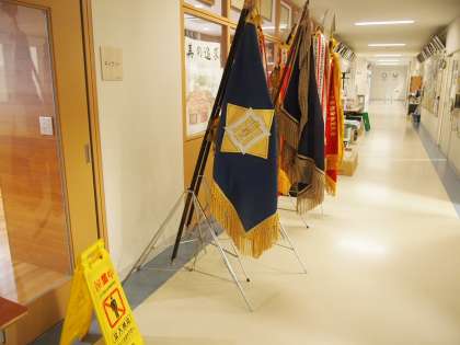 夏休み中の校内では、普段できないワックスがけを専門の業者さんが入って行っています。職員室前のギャラリーも,展示物を全て廊下に出し、丁寧にワックスをかけていただき床はピカピカです。廊下に並ぶ優勝旗やトロフィーを見ると、フナキボプライドを先輩から受け継いだ生徒の頑張りが改めて心を打ちます。