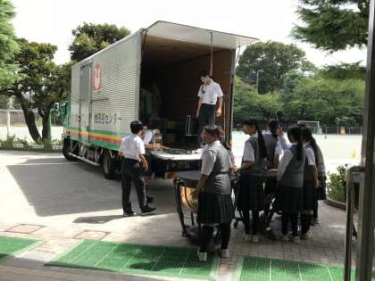 午前中の練習を終え、楽器をトラックに積み込み、いざコンクール会場となる府中の森芸術劇場へ出発です!電車の中でも、今までに注意された箇所をいっぱい書き込んだ譜面を見返し、本番へ向けての準備を欠かしませんでした。(室田)