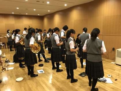 会場に着いて、楽器の準備をし、いざチューニング開始です。本番綺麗なハーモニーを奏でられるように、念入りに音程を調整しました。また、ソロのパートも確認し、いざ本番へ行ってきます。
