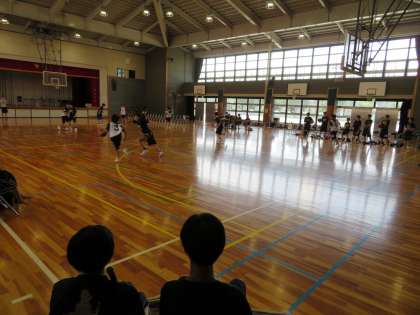 バスケットボール部の練習試合の様子です。午前中は女子が練習試合を行いました。昨日まで合宿に行って練習した成果をぜひ発揮してください。(田村真)