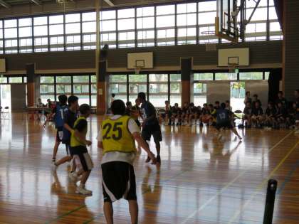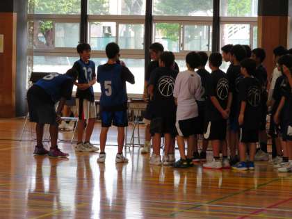 午前中の女子に続き、午後はバスケットボール部の男子が練習試合を行っています。1年生も試合に出場し、一生懸命プレーしていました。(田村真)