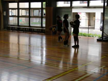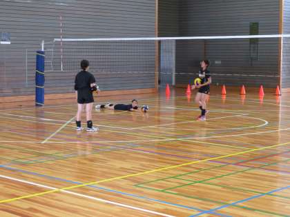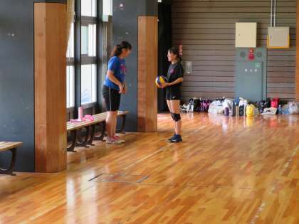 バレーボール部の活動の様子です。それぞれウォーミングアップを行っています。お盆明けで中には久しぶりに運動する生徒もいるので、ケガなどにはくれぐれも気をつけてください。(田村真)