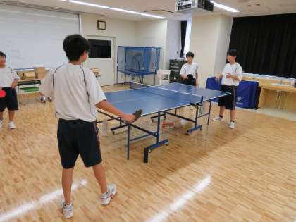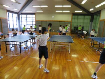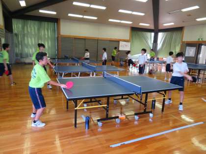 卓球部の活動の様子です。本日より、お盆休み明けの練習が始まりました。久しぶりの練習と言うことで、今日はラリーなどの間隔を取り戻すメニューを中心に行いました。(田村真)