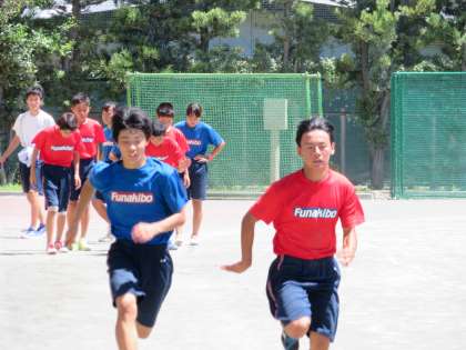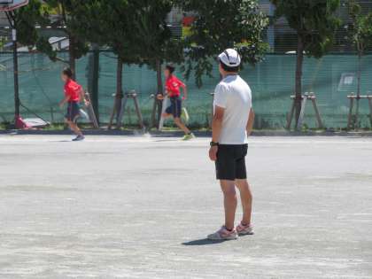 陸上部の練習の様子です。今日の練習では110月の世田谷区連合陸上大会に参加する他の部活の生徒も練習に参加していました。2人1組で走る短距離のメニューでは、顧問の稲見先生から「相手との勝負、そして自分との勝負だ!」という熱い励ましの言葉が響いていました。(田村真)