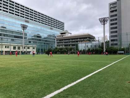都会のビルに囲まれた中で人工芝のピッチでできる喜びを感じながら試合に取り組んでます!