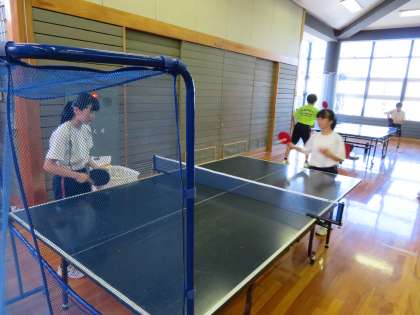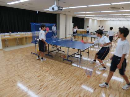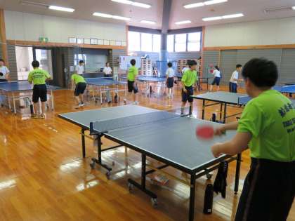 卓球部の活動の様子です。昨日の練習試合で出た課題を考えつつ、今日の練習に取り組んでいます。熱中症に気を付けて頑張りましょう。(田村真)