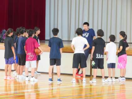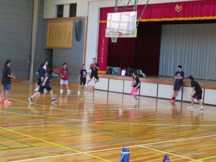 朝の体育館ではバスケットボール部の女子が練習に取り組んでいます。素早いパス回しの練習では、顧問の嶋川先生からのアドバイスを受けてそれを実践しようと頑張っています。また、今日は来年度入学予定の小学生も練習に参加しています。熱中症にはくれぐれも気を付けていきましょう。(田村真)