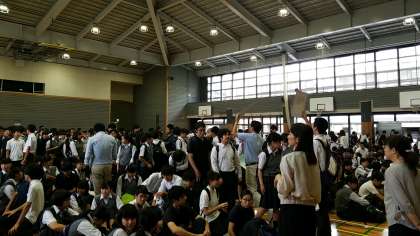 地震の際の引き取りなどについても確認しました。本日生徒たちに持たせておりますので、保護者の皆様もこの機会に引き取りなどのご確認をお願いいたします。