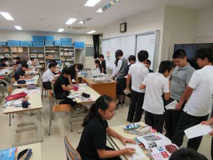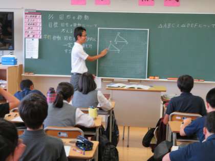 1年生の授業の様子です。理科の授業では圧力について紙コップを使った実験を行いました。数学の授業では、図形の移動に関しての演習を丁寧に行っていました。美術の授業では木のパズルのデザインをどうするかを資料を見ながら考えていました。どの授業も積極的に頑張っています。(田村真)