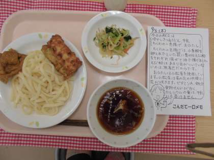 まだまだ蒸し暑いですね。今日は、蒸し暑い日にぴったりな冷やしうどんのメニューです。