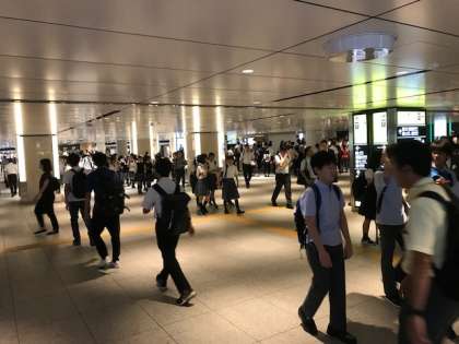 東京駅の集合場所の様子です。船橋希望中学校以外の生徒も集まって来ています。フナキボ生は、男子の集合が早いです。(伊井)