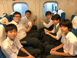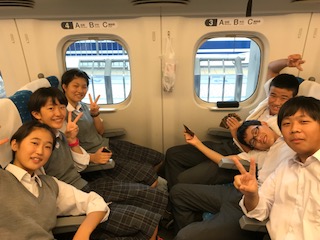 新幹線の車内の様子です。男女仲良くトランプをしています。(伊井)