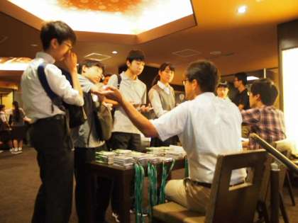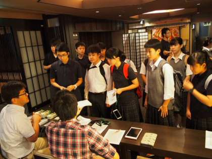 準備ができた班からチェックを受け、スマートフォンとバスチケットを受け取り、貴重品管理の注意を受けて出発です。