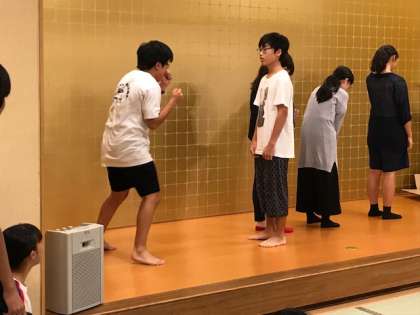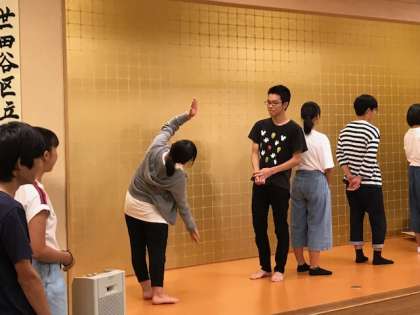 レク大会のジェスチャーゲームの様子です。写真のお題は一体何でしょう?(伊井)