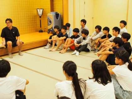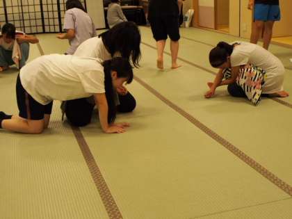 夏休み前から、時間をかけて準備してきた係のお陰で大盛り上がりをしたレク大会ですが、皆が部屋に帰ったは、反省会です。そして、最後には100畳ほどの部屋にゴミを残さないようみんなでくまなくチェック。この姿が今のフナキボらしさを表しています。