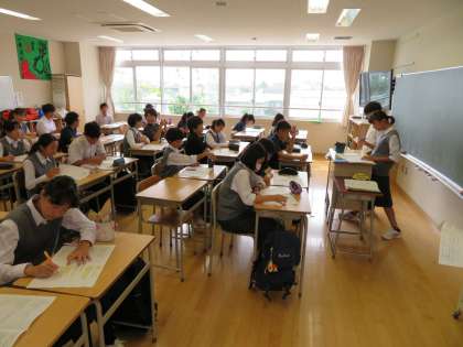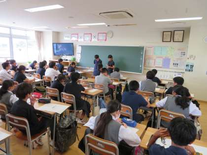1年生は1校時、先日学級委員で討議した移動教室のきまりについて各クラスで確認をしました。生徒たちが主導で移動教室を運営しようとする姿がどのクラスでも感じられました。(田村真)