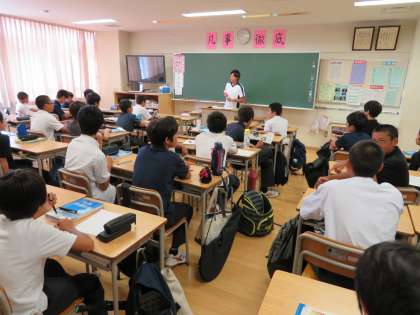9月より保健体育科の実習生が教育実習を本校で行っています。今日は、保健体育の授業に挑戦しています。生徒たちの反応も良く、和やかに授業が進んでいます。(田村真)