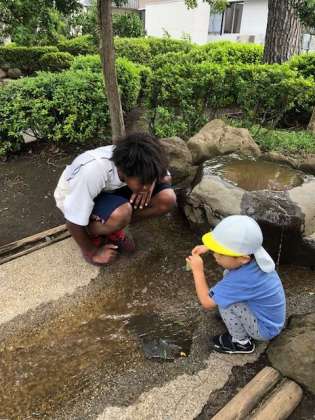 スマイルキッズ桜新町保育園では、敬老の日のメッセージカードづくりと公園でお散歩をしていました。