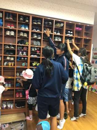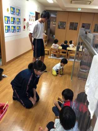 エクレール保育園では、お散歩の後に食後の歯磨き指導をしていました。