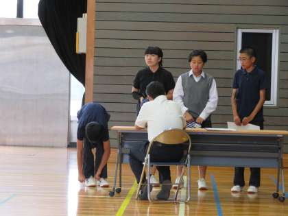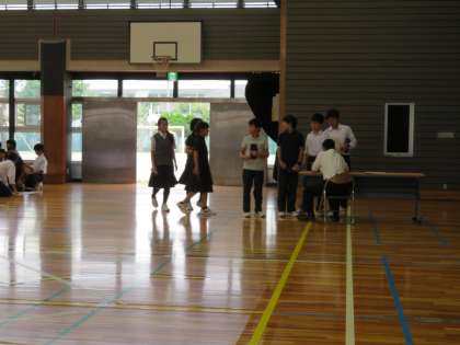 本日5校時、1年生は学校全体を使い、オリエンテーリングの練習を行いました。各班ごとに間隔をあけて出発しています。班員で協力して頑張りましょう。(田村真)