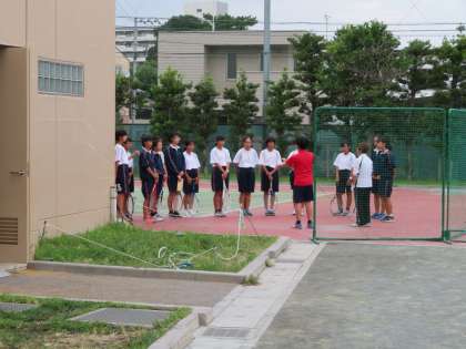 校庭の部活動の様子です。今日も2年生は職場体験に出ているので、1年生が主体で練習に取り組んでいます。いつも部活を引っ張る2年生がいませんが、自分たちなりによく頑張っていました。(田村真)